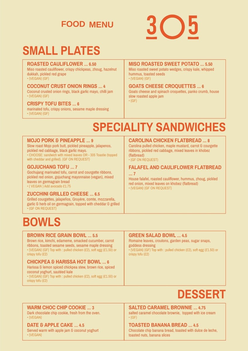 Introducing the Menu at 305.Kitchen
