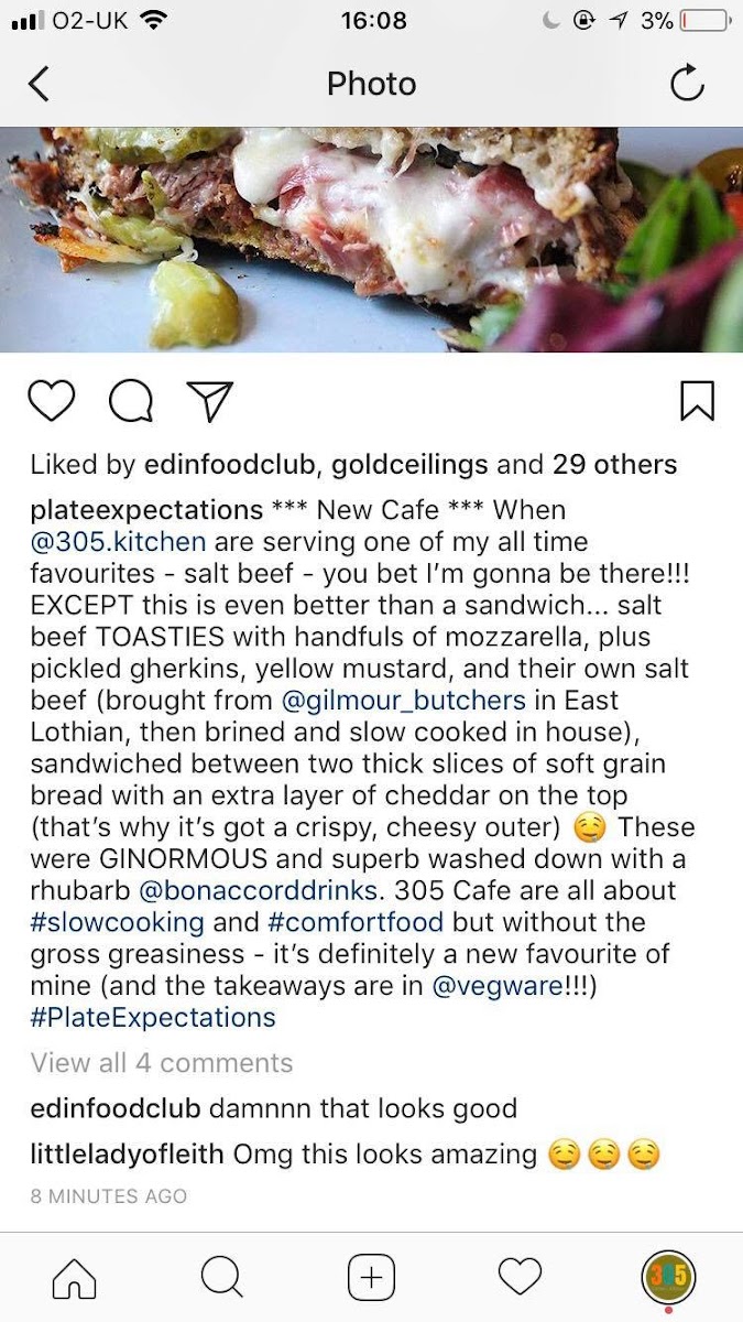 Located at 305 Leith Walk in Edinburgh, 305.Kitchen excels in creating a warm, inviting atmosphere paired with a tantalizing menu. Their offerings showcase a diverse range of dishes, from scrumptious breakfast rolls to mouth-watering salt beef and pickle toasties, beloved by patrons like Hannah and Colin. These signature items highlight the café’s emphasis on freshness and flavor.